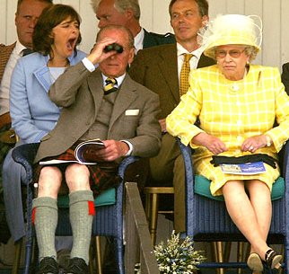 Most Americans don't follow goings on across the pond that much, which means they've really lost out on the hilarious saga of the Cherie-end of the Tony&Cherie show. Cherie (pictured above behind the HRH fossils in what is either a jaw breaking yawn or a moment when she just nearly lost control of those well documented anti-Royalist feelings) has been a near constant source of amusement for observers like me for years now. When she isn't defending human rights she's doing her part for Labour each and every day (for what she paid her stylist, she could and should have just hired a general contractor to sand blast the whole surreal edifice away and rebuild completely, but I understand her hesitation: there are only three heavy-engineering firms, two in the US and one in Japan, with the technical know-how to deal with history's most idiotic grin). Her Wikipedia profile contains a brief overview of the various controversies surrounding her. A complete coverage might have required the storage capacity of a whole new Wikipedia. Really, it's rare that a woman like Cherie comes along who can leave Hillary Clinton and Nancy Reagan in the dust, and leaves us so wholly in awe after the years of entertainment she provided. She set a standard for utter shamelessness that should serve as an inspiration for us all.