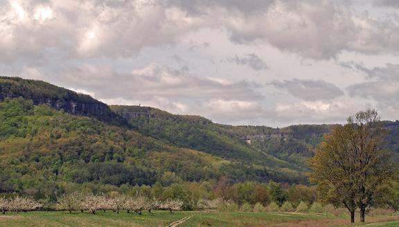 It also has the power to transport. When I drink it I get the most powerful memories of visiting Indian Ladder Farms (the landscape of which is pictured), a really magical place near Albany that was a favorite fall haunt as a child. We would visit several times every fall for fresh-pressed cider (they have an honest to goodness, and operational, old-fashioned cider press), fresh sugar donuts (among connoisseurs it is well known that Indian Ladder Farms makes the single best donut on Earth), pick your own apples, pumpkins, etc. etc. We would also simply wander around the farm and stare up at the turning leaves along the Indian Ladder cliffs, through which Mohawk Iroquois trade routes had operated since the Dream Time of upstate New York. The air was crisp; the world was at once very new and ancient. It felt perfectly autumnal.
